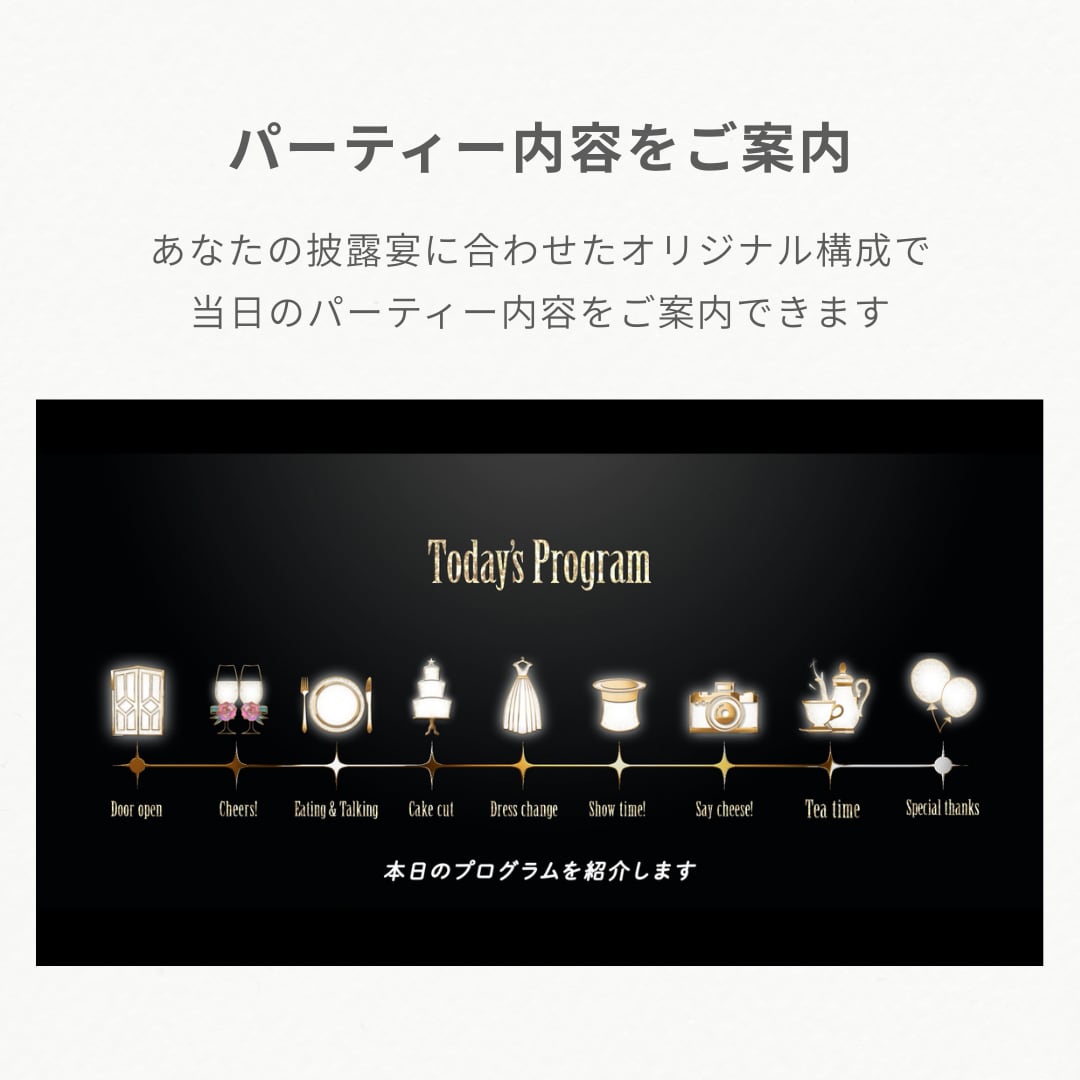 (※1)アイコンは6~10個でお好きな組み合わせで制作出来ます。イベント毎に、写真(無しでも可)とコメントをご設定頂けます。また、冒頭タイトル(お名前表示)箇所6枚はご希望の場合はお二人の写真に変更可能です。